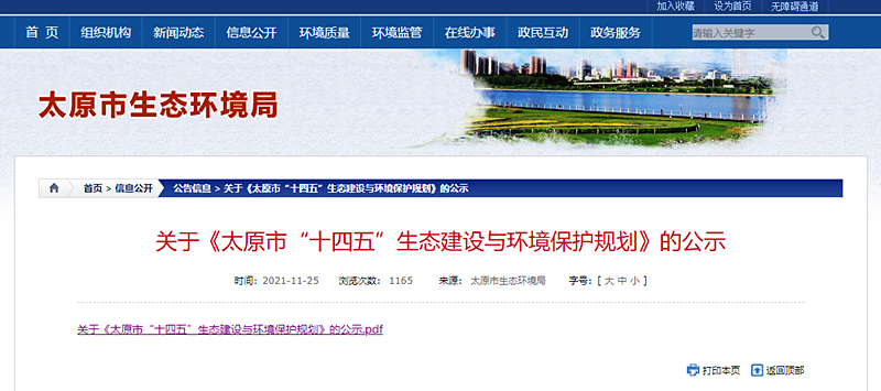 文章來源:地大熱能 發布作者:太原市生態環境局 發表時間:2021-12-22 08:45:06瀏覽次數:3697