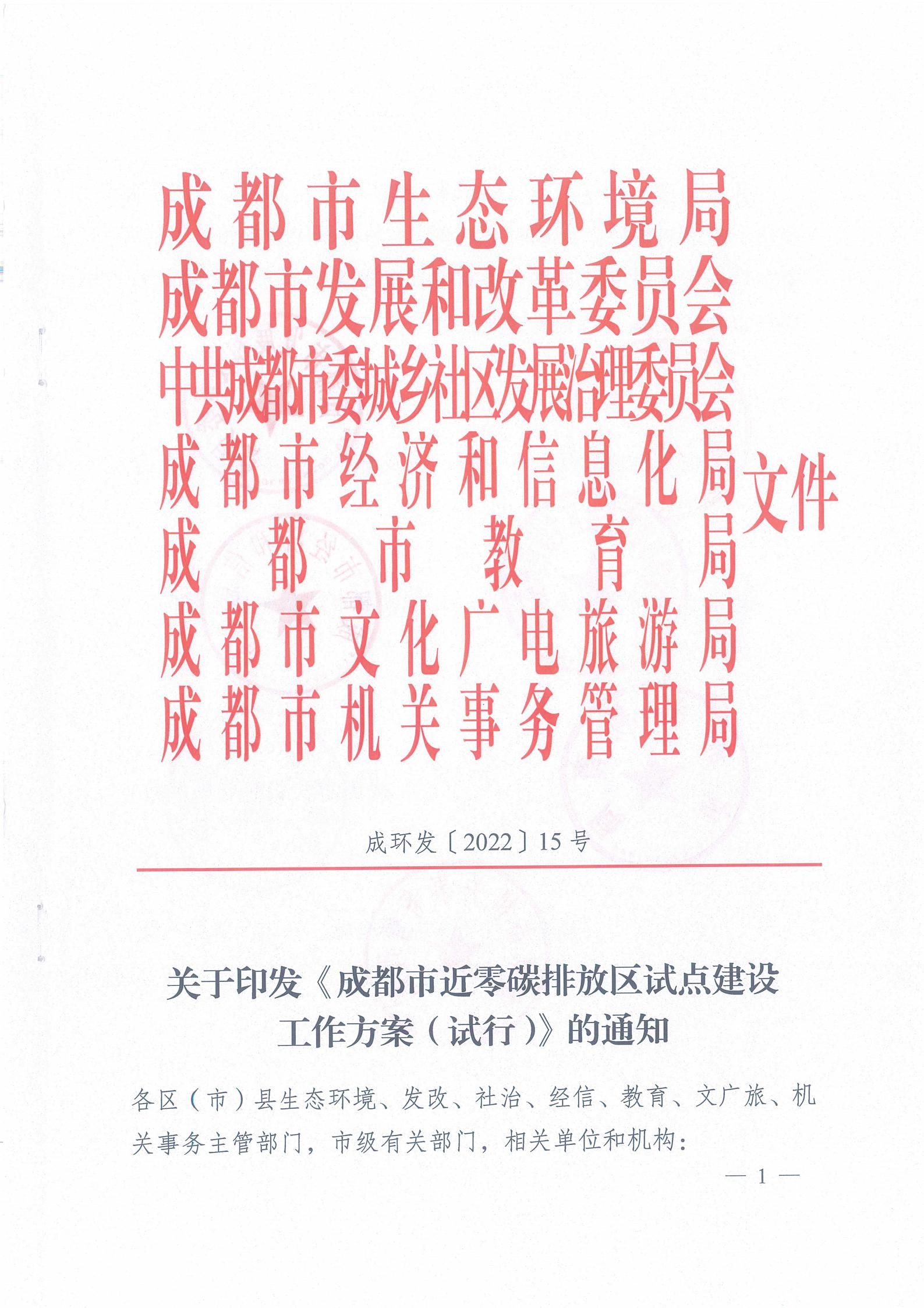 地大熱能地?zé)?多能互補網(wǎng)訊:為貫徹碳達峰碳中和目標(biāo)愿景,落實積極應(yīng)對氣候變化國家戰(zhàn)略,因地制宜探索近零碳發(fā)展模式,近日,成都市生態(tài)環(huán)境局會同市發(fā)改委、市委社治委、市經(jīng)信局、市教育局、市文廣旅局、市機關(guān)事務(wù)局聯(lián)合印發(fā)《成都市近零碳排放區(qū)試點建設(shè)工作方案(試行)》,并就2022年度試點建設(shè)申報工作作出安排部署。