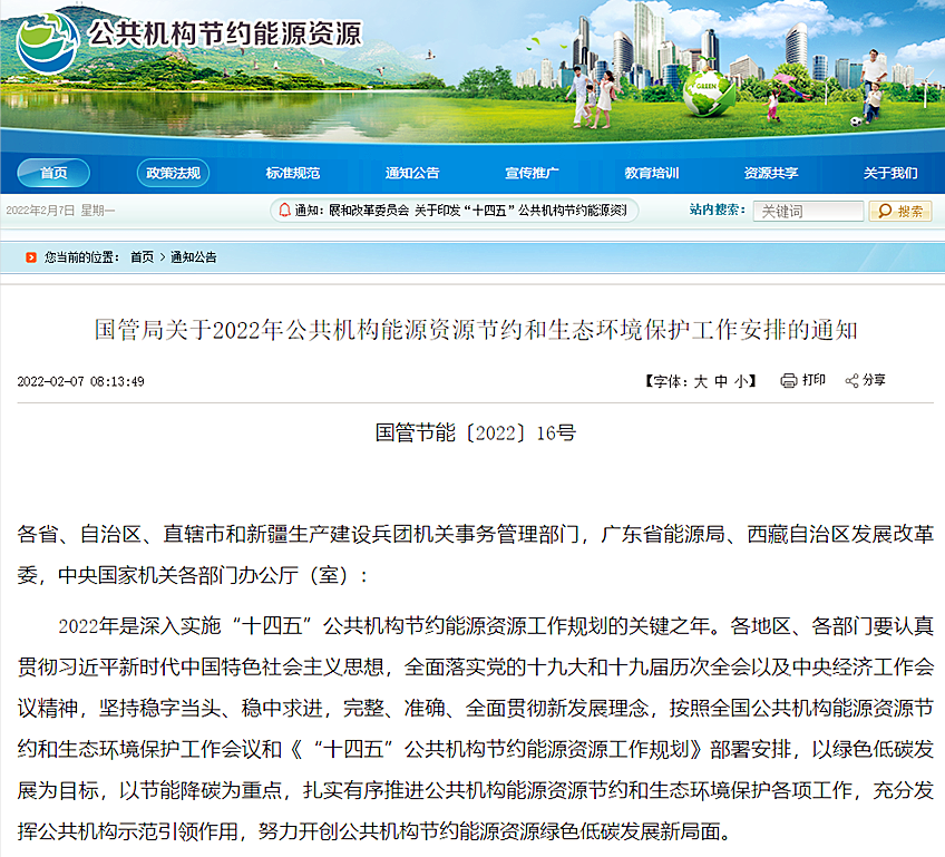 地大熱能清潔低碳能源網訊:國管局發布《關于2022年公共機構能源資源節約和生態環境保護工作安排的通知》。通知指出,全面落實節能降碳有關工作: