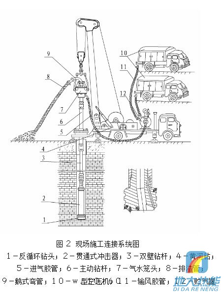 (4) 水下鉆進(jìn)可實(shí)現(xiàn)沖擊器碎巖、泥漿護(hù)壁、氣舉反循環(huán)排屑(不受深沒比限制)綜合 效能,為解決目前我國(guó)卵礫石地層鉆進(jìn)難的問(wèn)題,提供了科學(xué)的工藝方法;