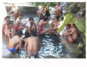 云南躍進橋溫泉風景澡堂會的熱水最高達70-80度,由于是自然溫泉,含有多種礦物質和稀有金屬元素,對人體的某些疾患有特殊的療效,因而慕名前往洗浴的客人遠到西藏也不乏大有人在,只是現(xiàn)在的時間主要是周邊的人們,到三、四月份就會有更多遠方的西域者陸續(xù)到來。不少洗浴者一洗就是十天半月,更有甚者能洗兩到三個月,目的是治病,據(jù)說還真有不少人治好了疑難雜癥,不然的話怒江“澡堂會”怎么會在印度、尼泊爾、巴基斯坦、新加坡、馬來西亞甚至美國等地聞名遐邇。