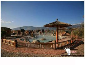 云南下關(guān)溫泉風(fēng)景明童軒《德勝關(guān)溫泉》詩云:蒸蒸本元?dú)猓柩┤藸幵 km無澤物功,遠(yuǎn)勝貪泉屈。大理下關(guān)溫泉在山谷之中,背依附者摩山,峭石噻巖壁立,面臨大理西洱河岸,河水洶涌奔騰;庭院之中,設(shè)有大理亭閣游廊,遍植花木,四季花香,環(huán)境幽雅,景色宜人,下關(guān)溫泉是人們休假療養(yǎng)的場所。