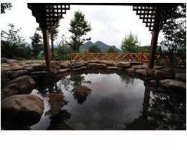 貴州黃平浪洞溫泉風景黃平浪洞森林溫泉度假山莊位于貴州省黔東南州黃平北面浪洞鄉溫水塘村,處于兩州一市交界(黔東南州、黔南州和遵義市),更是處在舞陽河國家級風景名勝區范圍內,具有較好好區位優勢。四周依山傍水,原始植被保存良好,是天然的氧吧。浪洞溫泉在100平方米范圍內由5~7年泉眼平地,噴涌而出,日流量每天1000噸左右。溫泉無色,甜味,井口水溫49℃,根據SI02含量計算,推測靠巖面附近溫度可達60℃,按國家礦泉水溫度分類標準,為高熱礦泉水(42-100℃)。該溫泉地熱水化學類型為HCO3-NA,屬弱堿性(PH=8),低硬度、低礦化度的極軟水,符合飲用水標準。